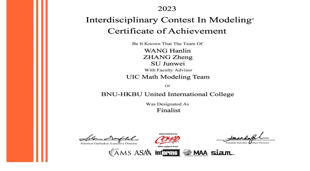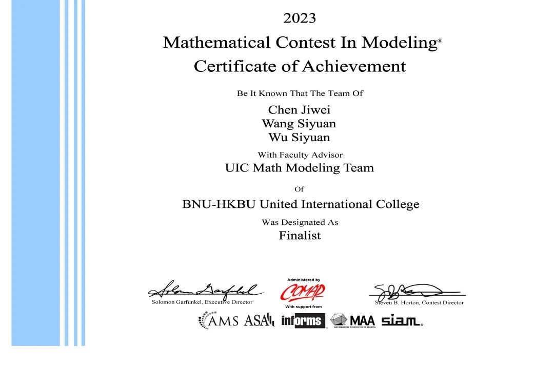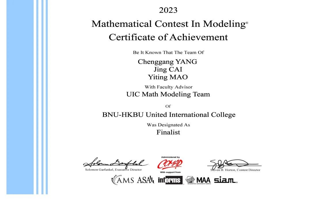 UIC学子在2023年美国大学生数学建模竞赛再创佳绩