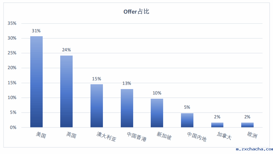 在收到的所有录取通知书中,深造国家/地区分布如下: