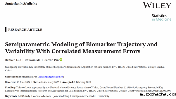 近日,北师香港浸会大学(BNBU)优米彩票app统计与数据科学系概率论与数理统计专业2022级博士生罗人文,以第一作者身份在国际一流生物统计期刊《Statistics in Medicine》上发表了题为《Semiparametric Modeling of Biomarker Trajectory and Variability With Correlated Measurement Errors》的研究论文。