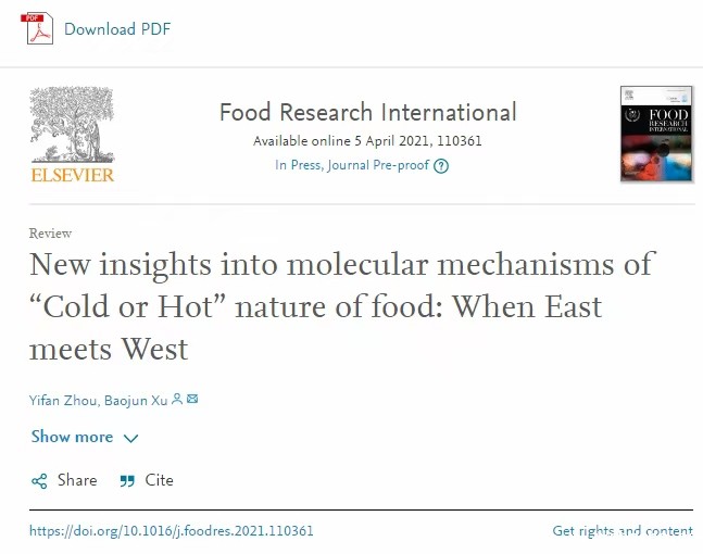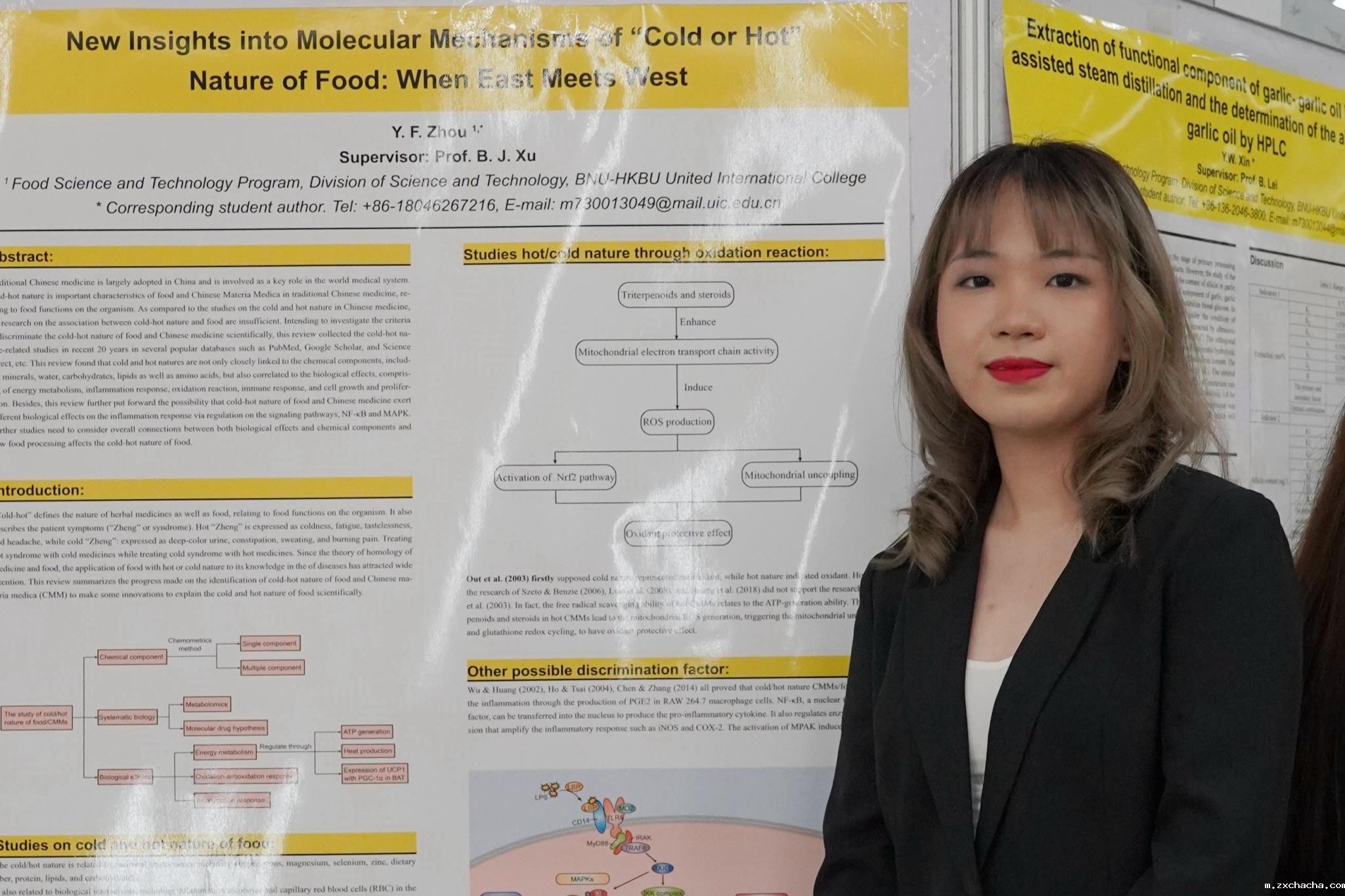 在生命科学系主任徐宝军教授的指导和鼓励下,周一帆开始对功能性食品如松茸、皂苷等对炎症、癌症、肥胖和糖尿病的潜在益处进行综述研究,积累了大量有关植物化学、生物科技,以及慢性疾病的机制和治疗方面的课外知识。她在毕业论文研究中医学中食品的寒热性,这篇《有关于食品寒热性的新见解:当东方遇见西方》发表在国际知名期刊Food Research International上。大四下学期,周一帆完成了另一篇有关膳食皂苷抗癌分子信号通路的综述论文,发表在国际权威期刊Critical Reviews in Food Science and Nutrition上。