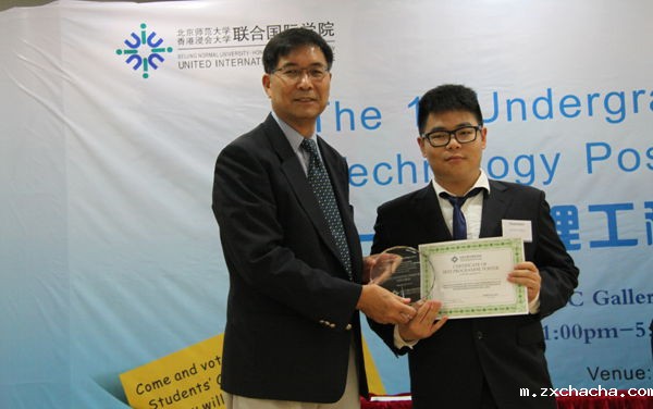 理工科技学部院长钟森文教授和教务长张根发为得奖同学颁奖,并对他们的海报略作点评。
