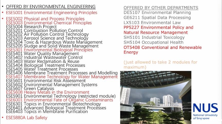 新加坡国立大学环境工程硕士选课列表