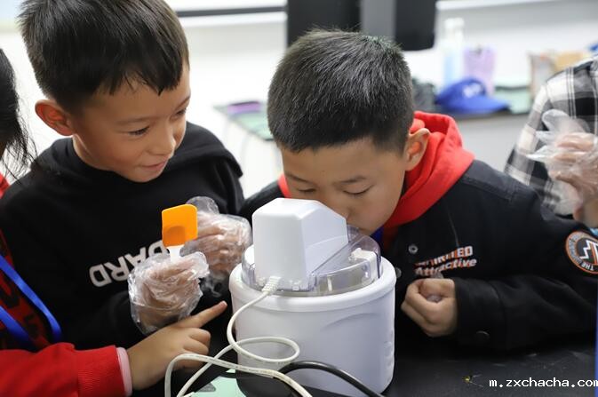等待冰淇淋制作的过程中,小朋友们围绕在冰淇淋机旁不愿走远,频频向志愿学生询问冰淇淋是否完成,但为了得到完美的成品,小朋友们还是沉下心来继续等待。看着逐渐成型的冰淇淋,相信他们一定体会到了耐心等待的意义。