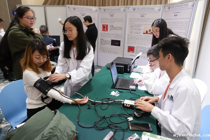 开幕典礼结束后,吴清辉校长等校领导推开多功能厅的分隔大门,宣布科技周正式开始!首日举办的心理日活动吸引了众多师生前来参观及体验。吴清辉校长也在同学们的指引和讲解下,了解了心理学各方面的知识,体验了“眼见不一定为实”、3D立体图等实验及各类专业仪器。吴校长还穿上白大褂,亲临“犯罪现场”,扮演了一回福尔摩斯,尝试通过现场的蛛丝马迹破案。