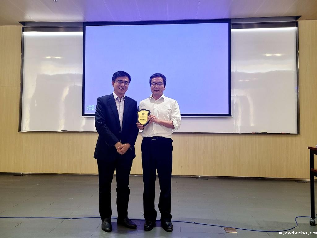 UIC校长汤涛教授为冯建峰教授(右)赠送纪念品