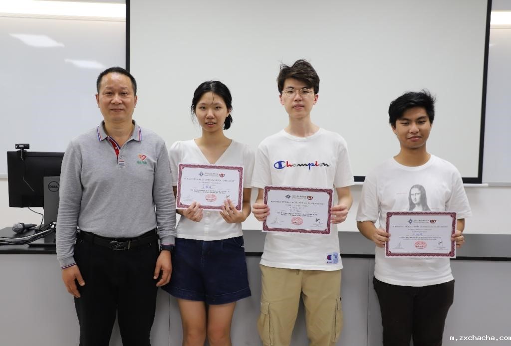 徐宝军教授(右一)为最佳海报奖“一口虾肚”制作团队颁奖