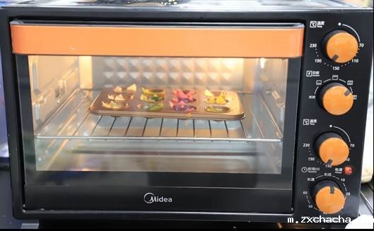 正在烤箱烤制的馄饨皮
