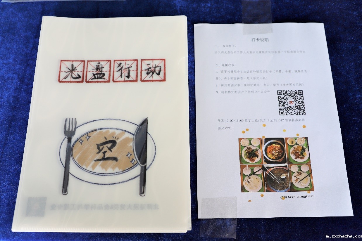 志愿者向当天“光盘”的学生发放纪念文件夹