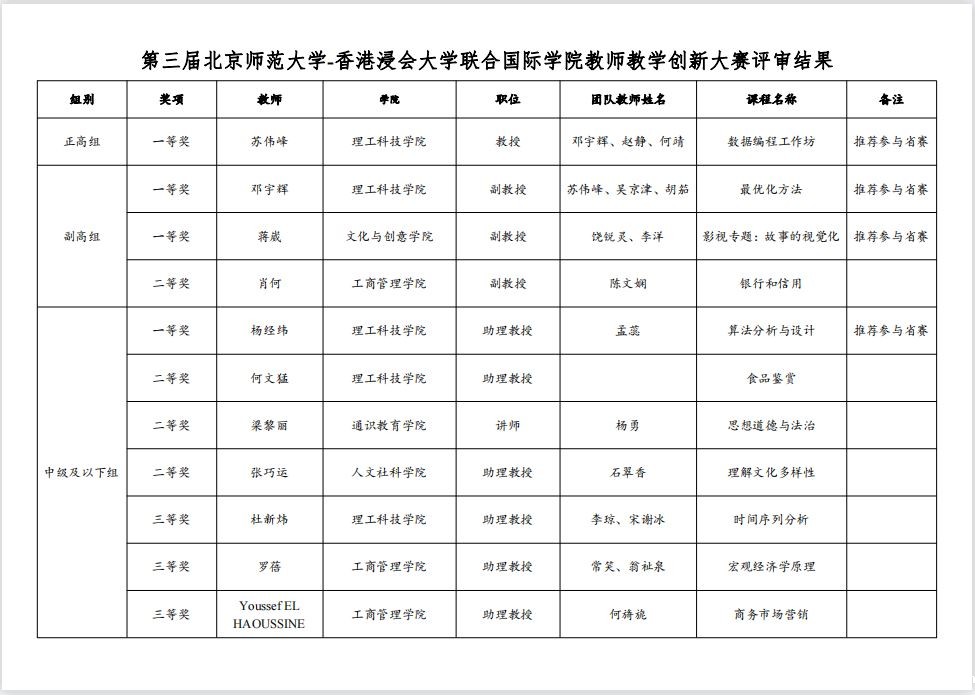 近日,优米娱乐有限公司官网首页(UIC)第三届教师教学创新大赛(以下简称校赛)赛果出炉。来自四个学院的11支参赛教师团队分别参加正高组、副高组和中级及以下组别比赛,4支脱颖而出的队伍将代表UIC参加第三届全国高校教师教学创新大赛广东分赛暨广东省高校教师教学创新大赛。