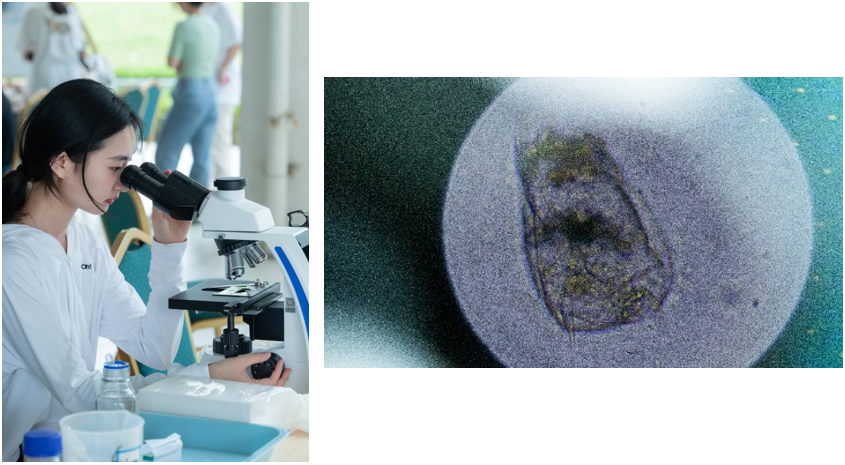 环科小实验是运用显微镜观察UIC雨果楼旁边池塘中的浮游生物。参与者们化身“科学探险家”,用显微镜观察水样中各种各样的浮游生物,并通过展示板找到自己发现的微生物类型。