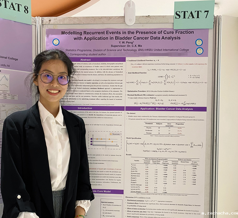 在大四的时候,我开始在马绰欣老师的指导下开始了第二段科研经历,也是我的毕业论文内容的研究,方向是存在治愈率的复发事件建模及其在膀胱癌数据分析中的应用。也正是这段和生物统计学非常契合的科研经历,很大程度上帮助我通过了剑桥大学的面试,并最后拿到了录取通知书。