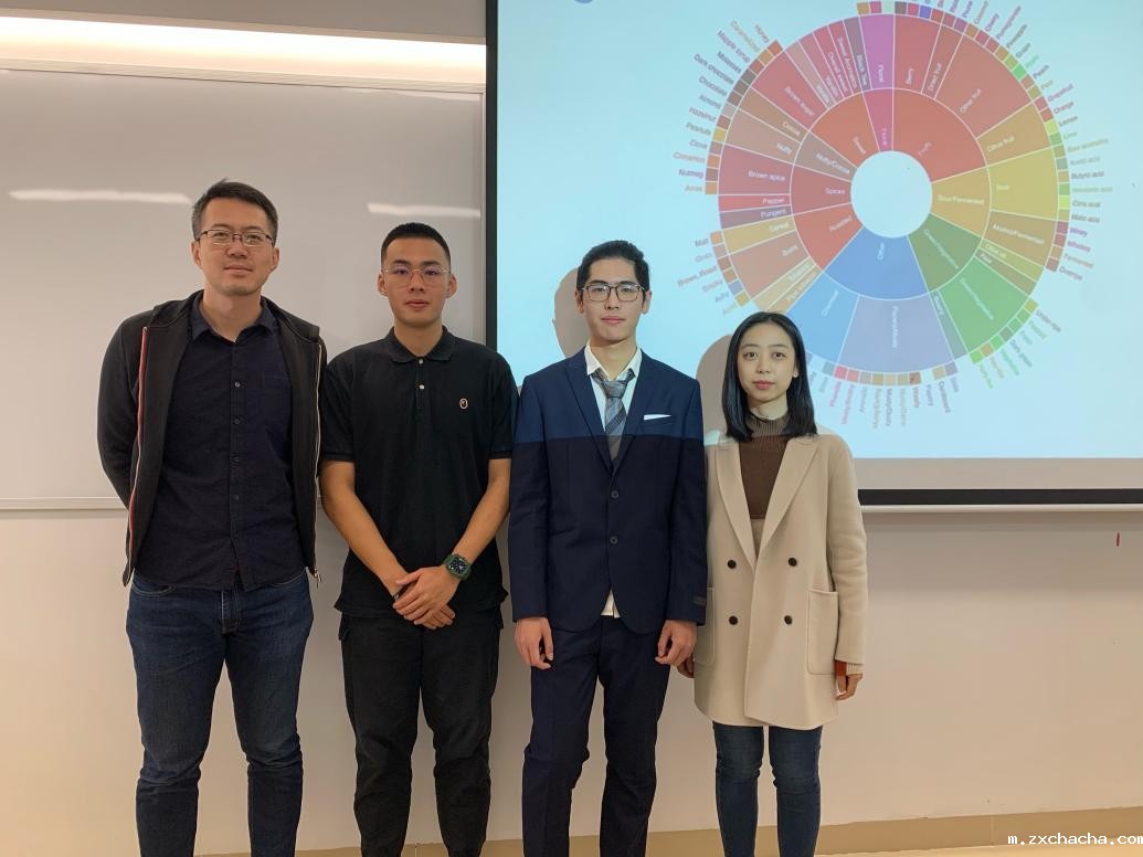 李元昊(右二)和毕业研究项目队友林昊秋与优米彩票app轩辕哲博士(左一)、孟蕊博士(右一)合影