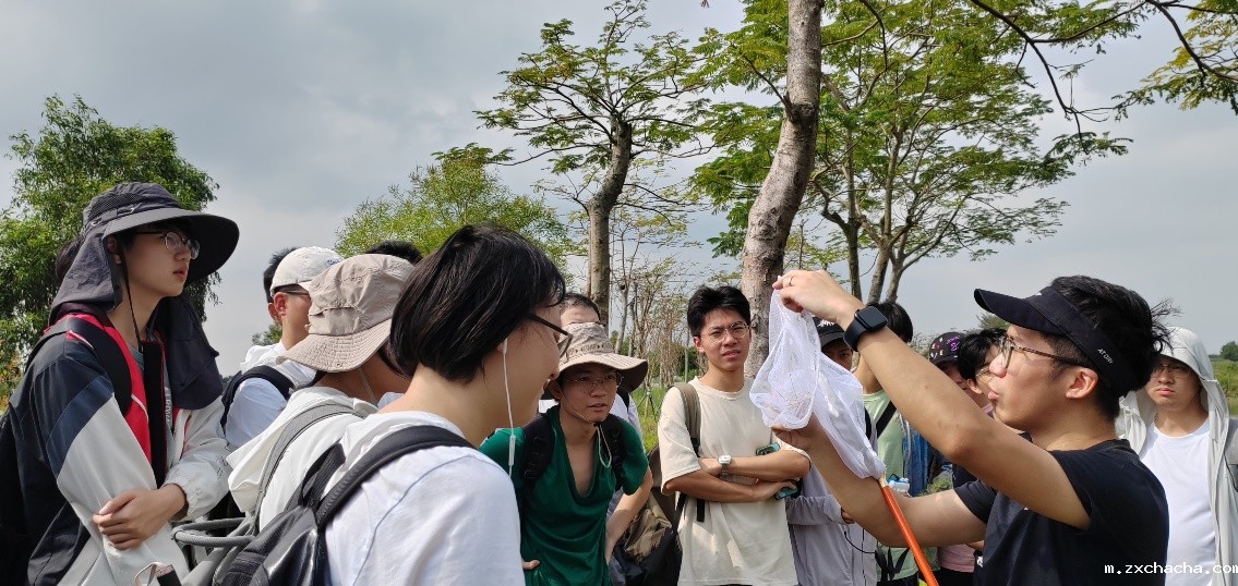 梁志文博士(前右一)在户外指导学生做生态调查
