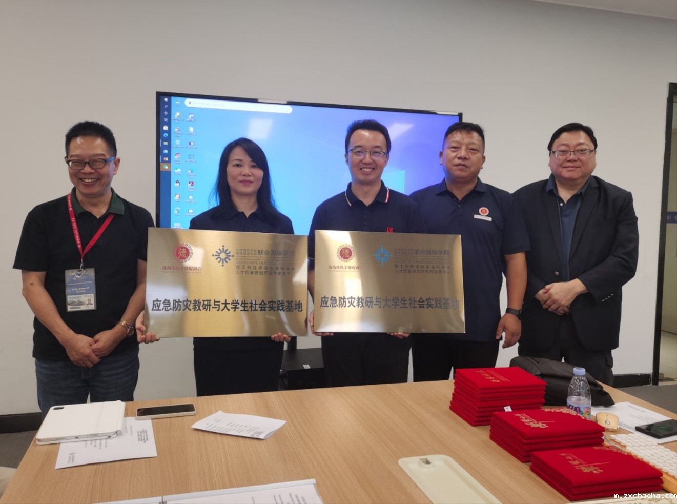 授牌仪式上,应用心理学专业人才因素绩效研究与发展中心与珠海市传统美德促进会互赠“应急防灾教研与大学生社会实践基地”牌匾。