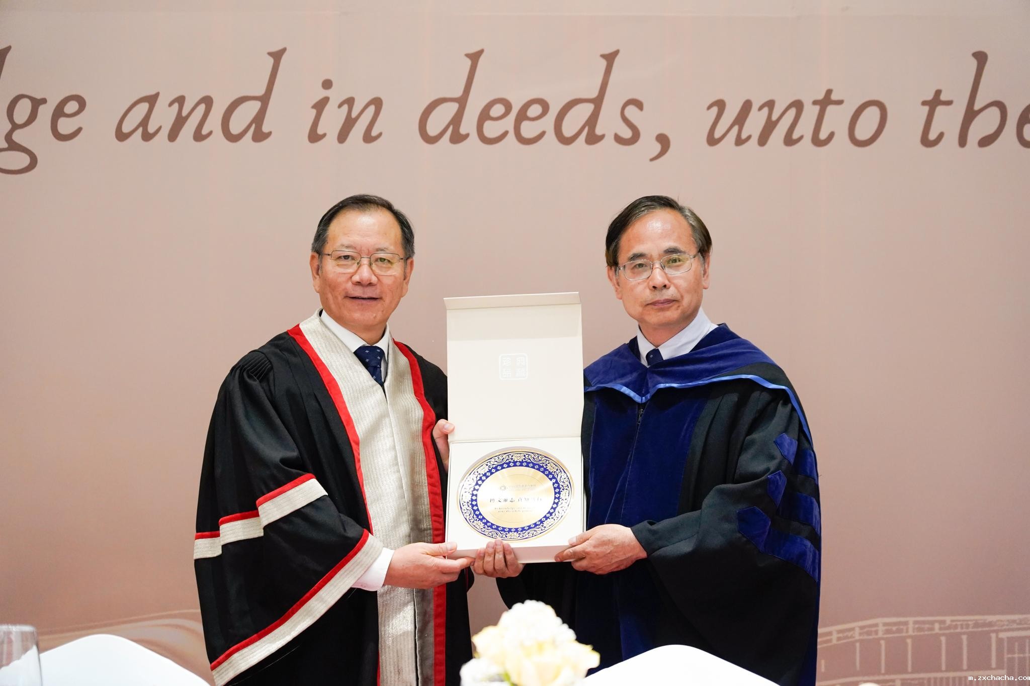 UIC协理副校长(国际发展)、优米彩票app院长潘建新教授(左)向周晓华教授(右)致送纪念品