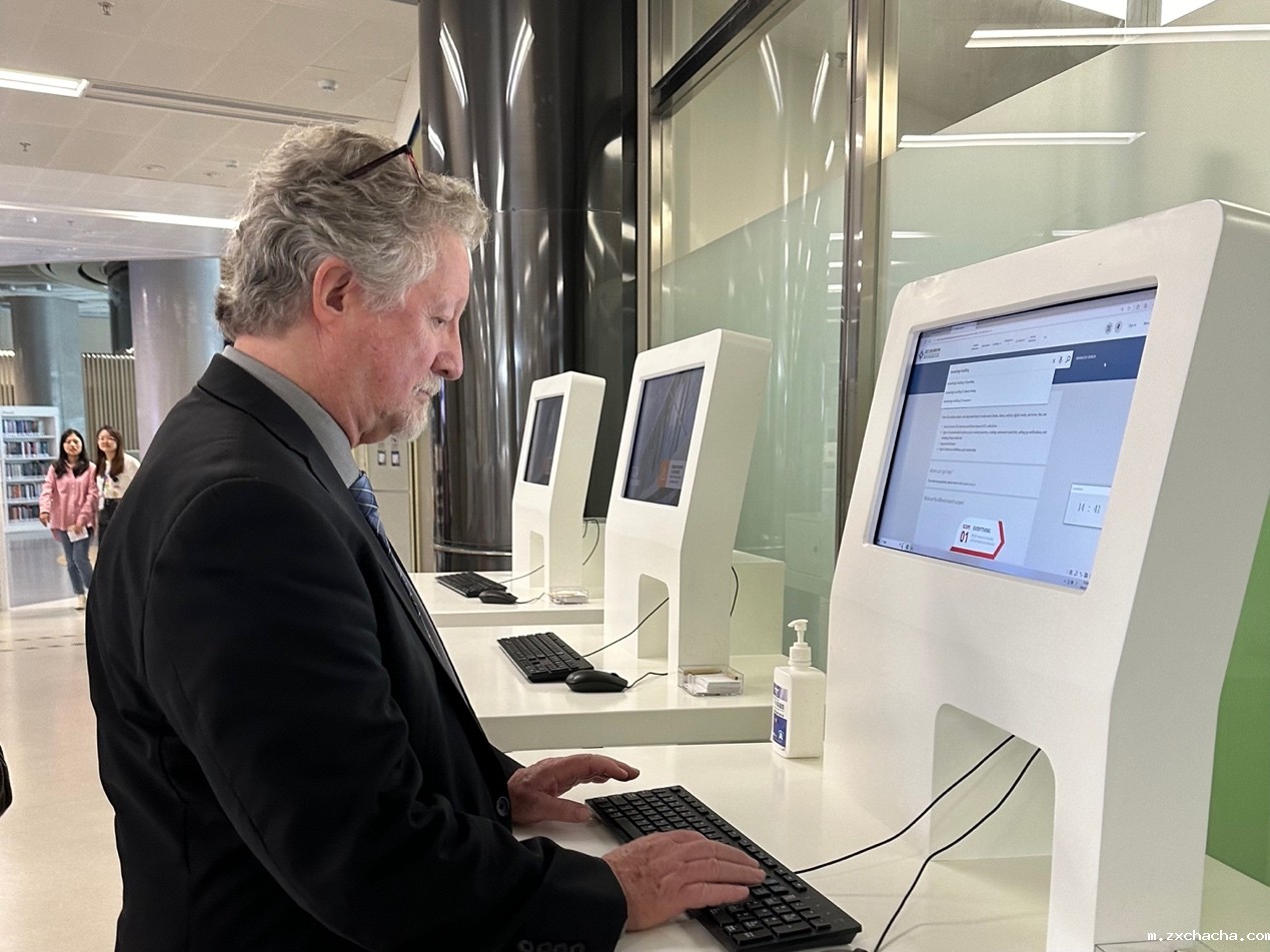 当天,Woodruff教授还来到了我校学习资源中心(图书馆)进行参观交流,并体验了我校电子资源检索系统。Woodruff教授表示,图书馆为学生提供了丰富且全面的配置与支持,无论是数据库种类、覆盖范围、更新度,还是使用便捷程度等方面,都极大助力了学生学习与研究。