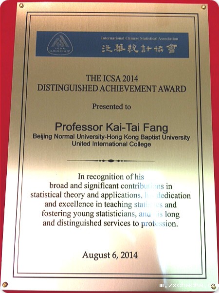 统计专业教授、统计与计算智能研究所所长方开泰荣获泛华统计协会(ICSA)颁发的2014年杰出成就奖。