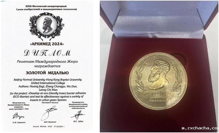 近日,由UIC优米彩票app三位本科生组成的研究小组发明的“新型防虫材料”在2024年第27届俄罗斯莫斯科“阿基米德”国际发明暨创新科技展中荣获金奖。