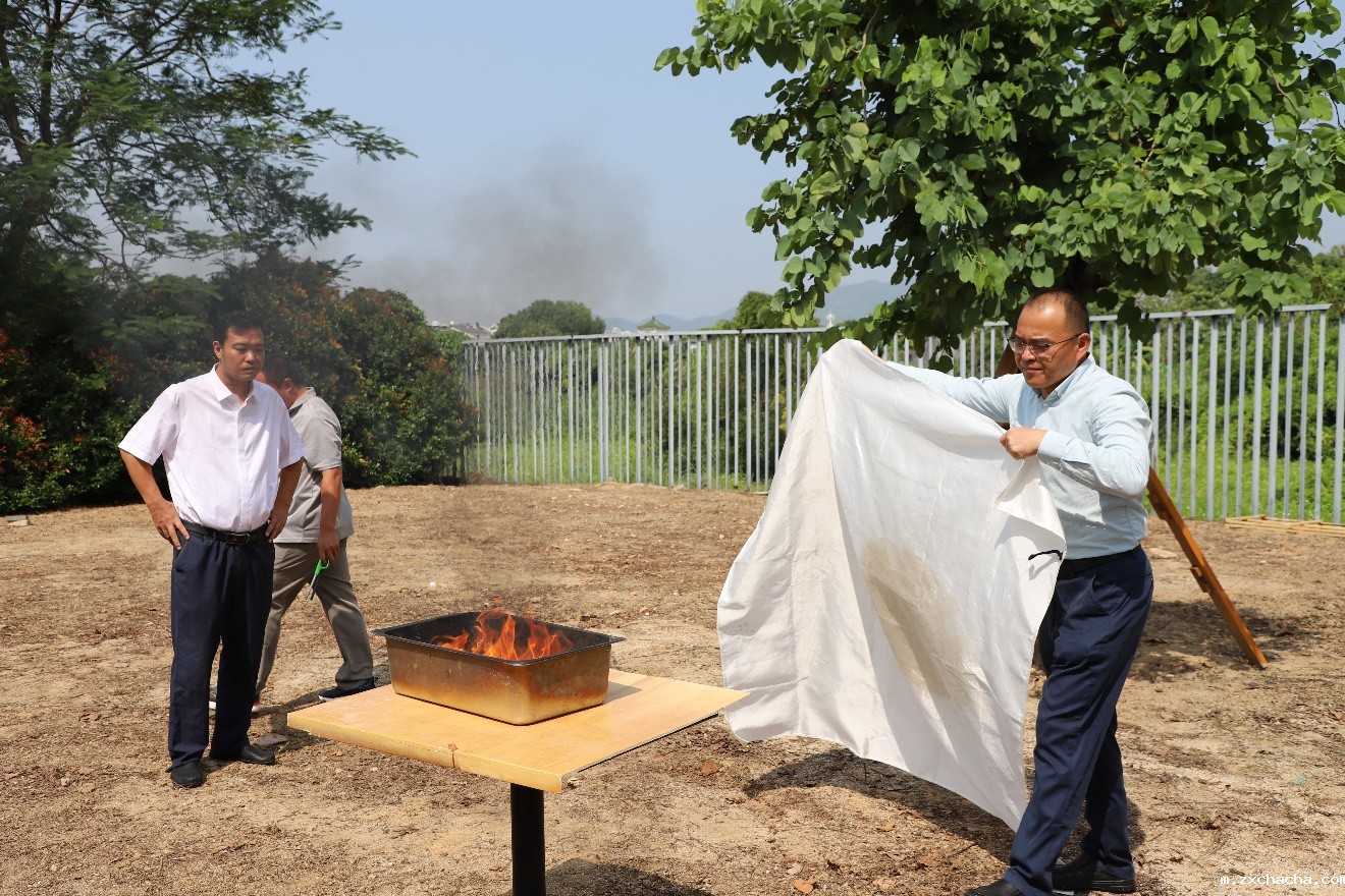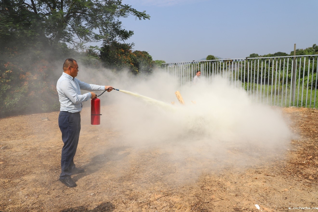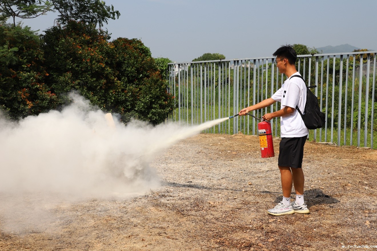 在应急演练环节,他现场演示了灭火毯和灭火器的使用方法,每位学生亲自动手实操,增强应急处置能力。